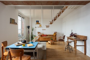 Métamorphose de 2 pièces mono-orientées en un duplex traversant avec un grand séjour et 2 chambres avec SDB à l’étage.